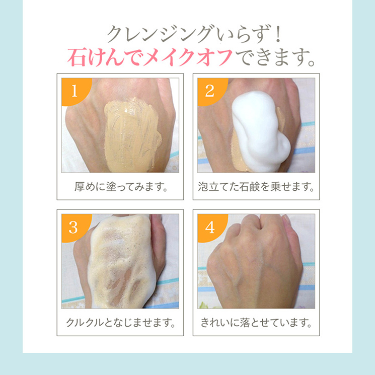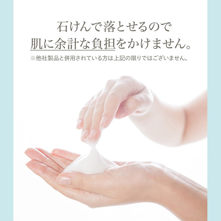 97%天然由来成分で石けんで簡単に落とせるので、お肌に負担をかけずにやさしくメイクオフ。